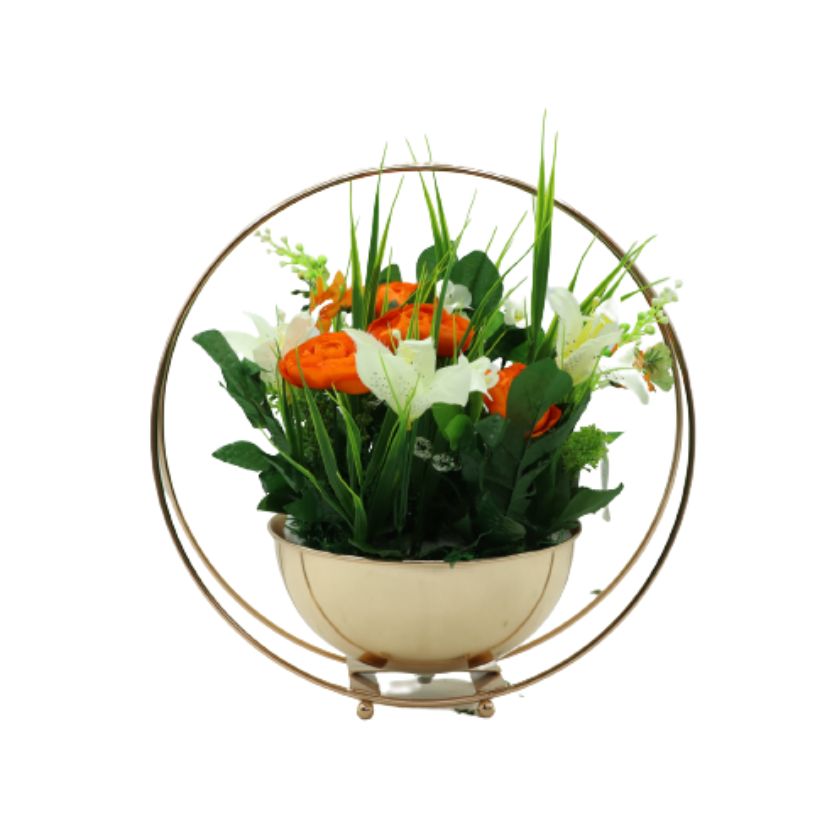 Boho Gold Metal Multi Ring Round Plant Hanger with Flower Pot