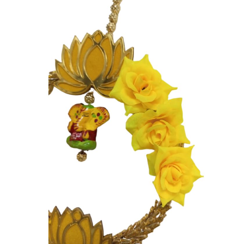 | Material | Of woolen multicolor color pom-pom, golden beads, Multicolor Bangle, Ganesha with Gota boll and golden ring |