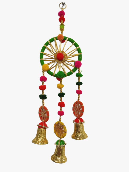 Flower Fairy HandCrafted Round Ring with Bell and Pompom Door Wall Hanging set: