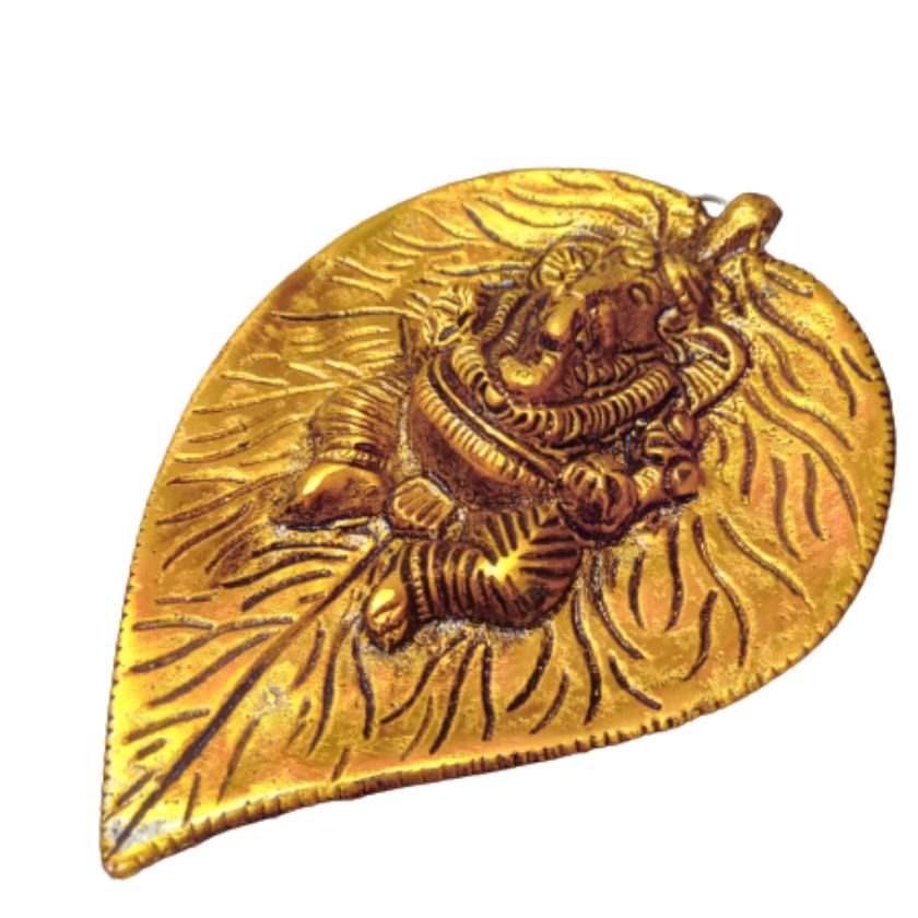 Ganesh Statue Crafts Metal Ganesha On Leaf, Wall Hanging Article for Wall Décor, Room Decor, Best for Housewarming, Wedding Gifts