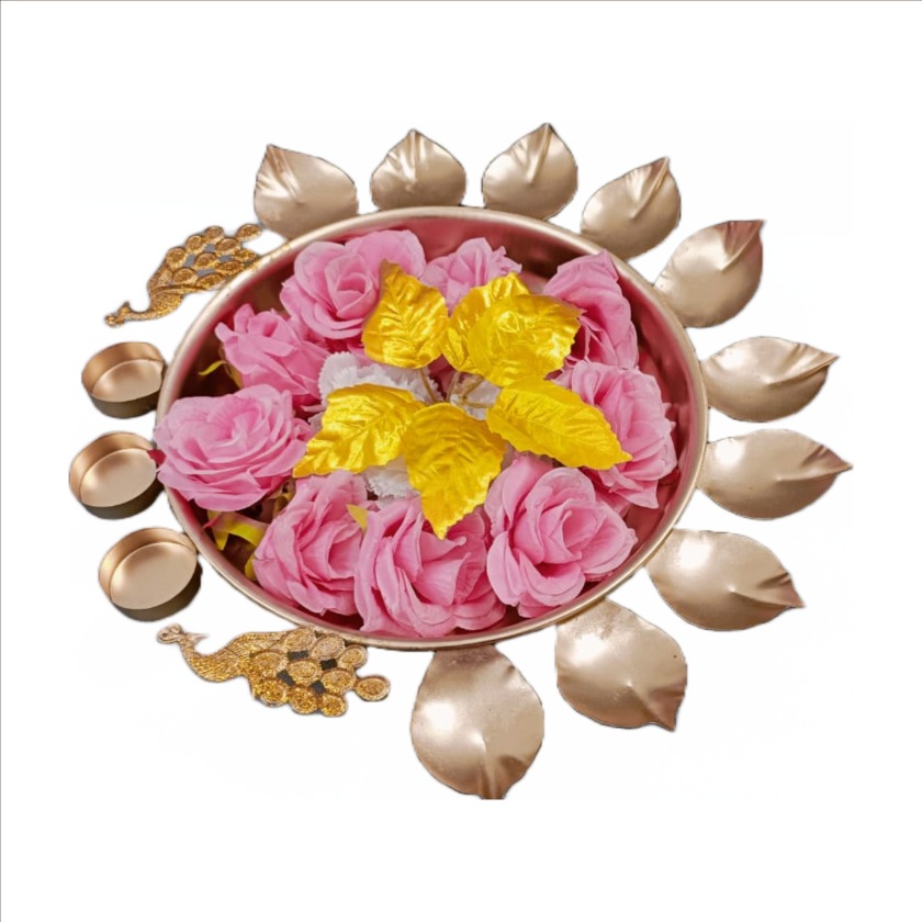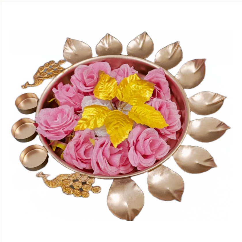 Flower Fairy Round Iron Golden Decorative Tray (Big)