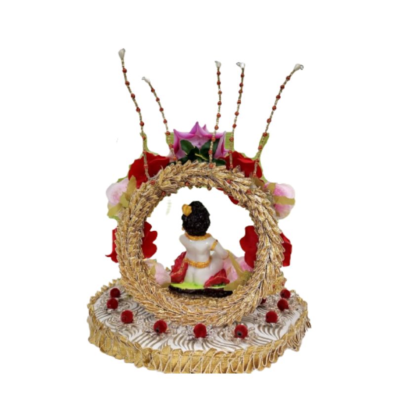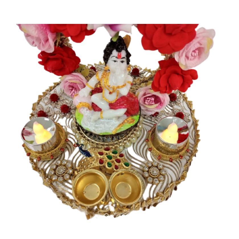 Shree Krishna Pooja Tray- 2 Tea Candle Holder , 2 Bhog Holder, 1 Krishna Murti