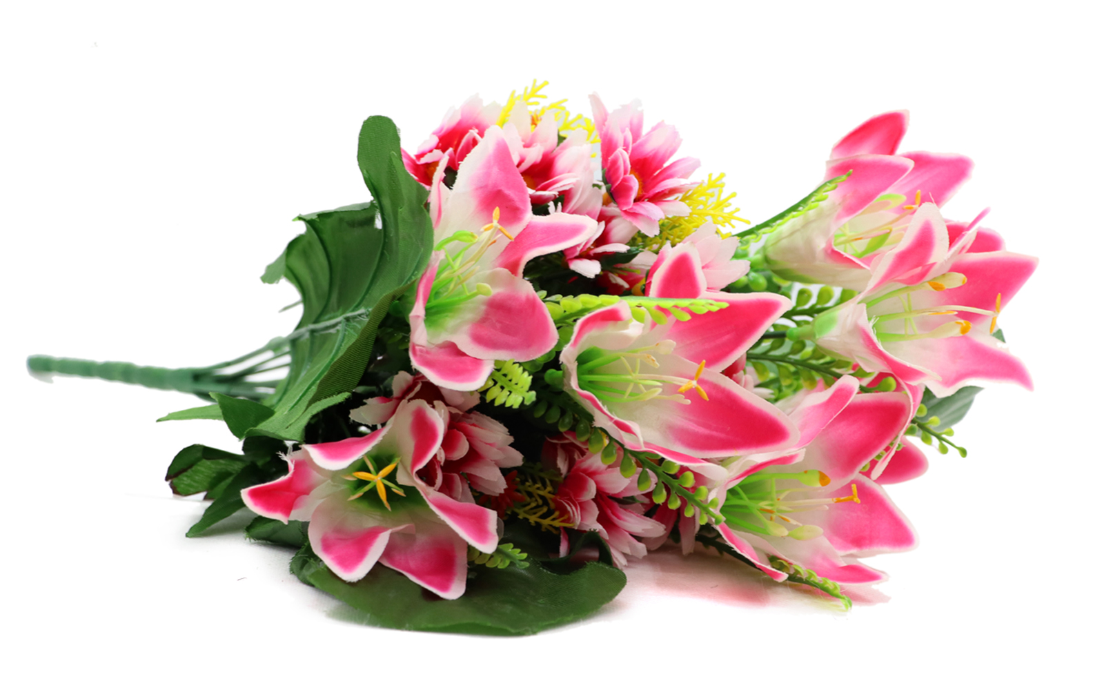 | Color | Pink, white & Green Leaf , white Vase |