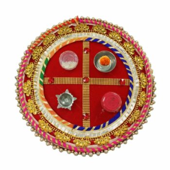 Pooja Thali with 2 Kumkum Chawel Bowl Holder Red and Gold
