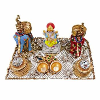 Ganesh Trey With Two Side Elephant candle Holder